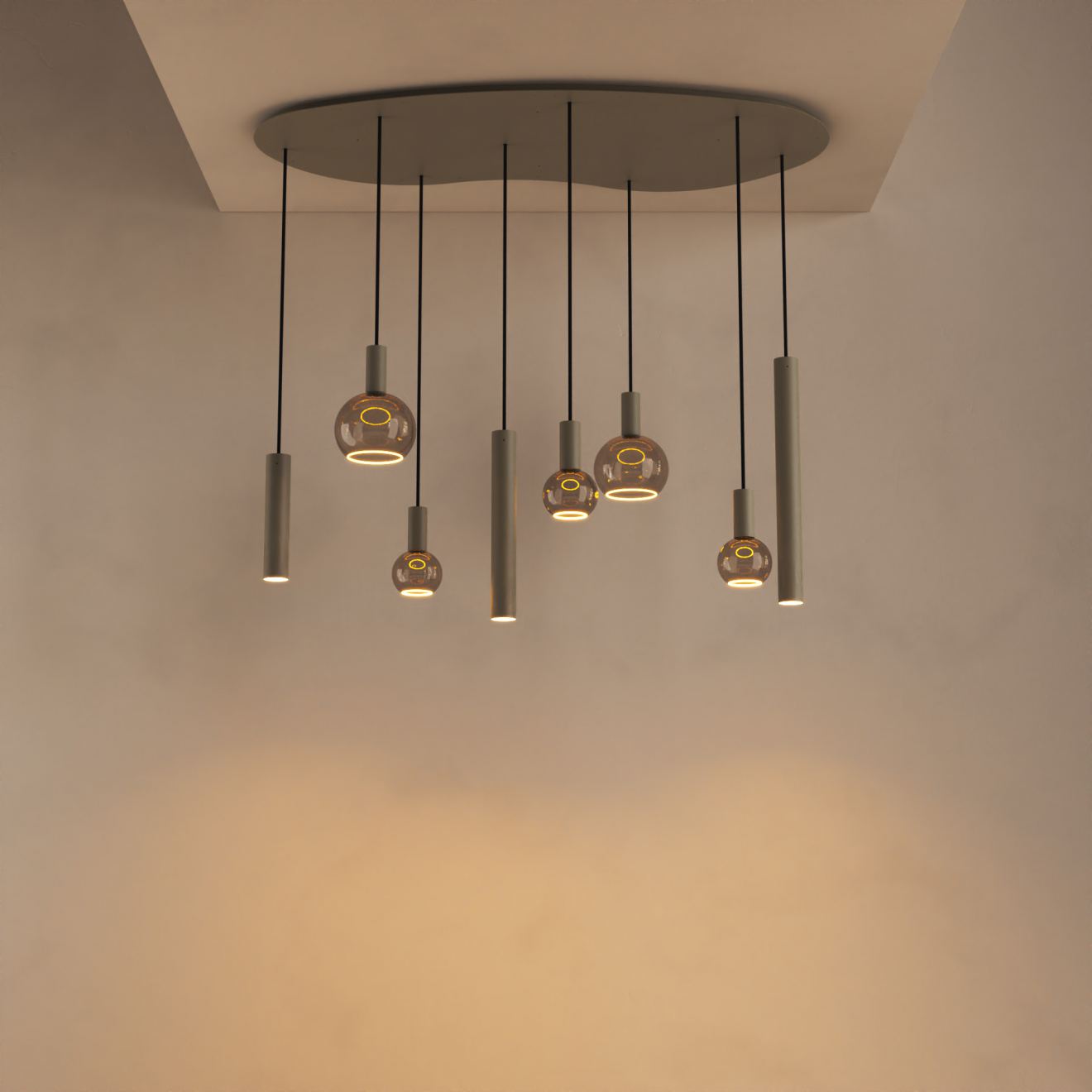 Our Riva pendant lamp is a real eye-catcher! This lamp really has a superb design thanks to its beautiful Segula light bulbs. This striking series combines the different heights of the columns with the light bulbs, giving it a playful effect. The lamp provides a combination of ambient and functional light. You can design the lamp to your own wishes.