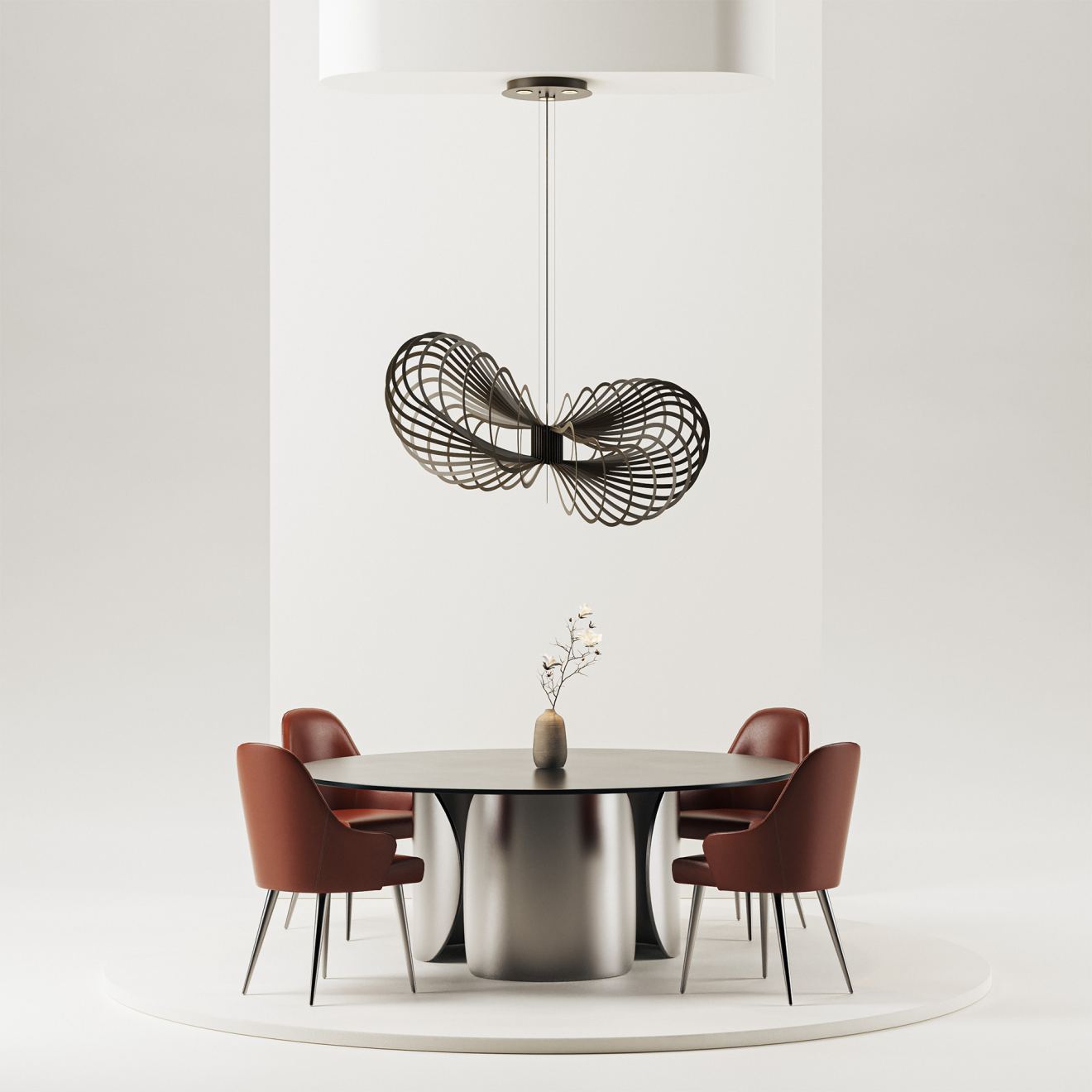 The recognizable metal slats remain and continue to form the characteristic heart of the Martani series. The experience changes from every angle, ensuring the fixture continues to surprise within the space.
