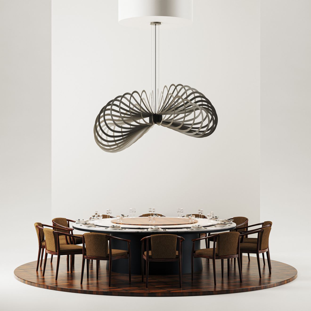 The Martani pendant lamp Ø200 cm demonstrates just how far Martani’s recognizable design language can be taken. With its generous diameter of 200 cm, this fixture is designed for large spaces where lighting must not only be functional but also make a clear statement.