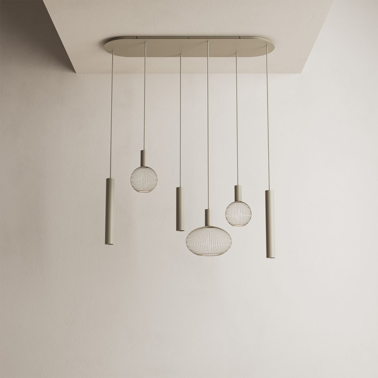 The Como 9130 pendant lamp combines a sleek oval shape with balanced light distribution. The fixture consists of three steel tubes and three Filo light sources, providing six light points that together create a playful yet balanced look.